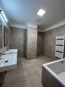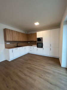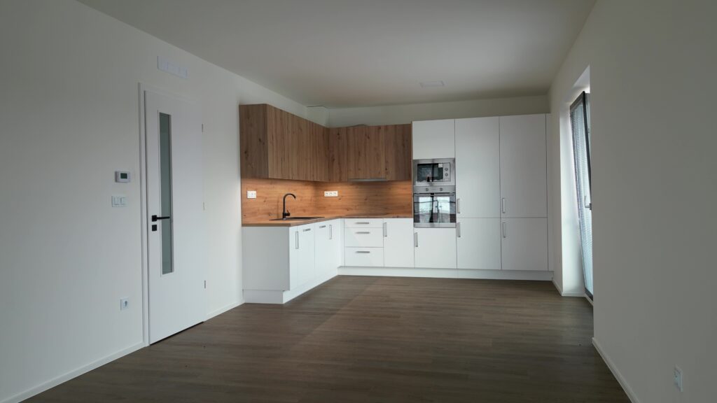 Moderní a elegantní 4+kk s velkou terasou. Prostorný a prakticky uspořádaný. Byt je vybaven kuchyňskou linkou s elektrospotřebiči (myčka, trouba, mikrovlnná trouba, lednice s mrazákem a indukční varná deska). Koupelna s vanou i sprchovým koutem, dvěma umyvadly, zrcadlem, otopným žebříkem a ventilem na pračku. Samostatné WC. V celém bytě je položena kvalitní vinylová podlaha. Byty v lokalitě jsou vytápěny systémem podlahového teplovodního topení. K bytu patří sklepní kóje hned vedle bytu ve 4.NP. Ideální byt pro velkou rodinu.