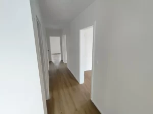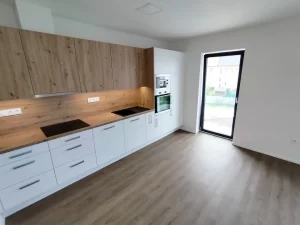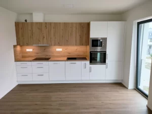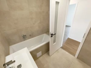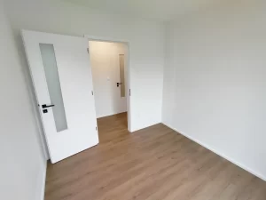 Moderní 3+kk s šatnou. Menší byt, ale praktický a cenově dostupný. Je vybaven kuchyňskou linkou s elektrospotřebiči (myčka, trouba, mikrovlnná trouba, lednice s mrazákem a indukční varná deska). Koupelna s vanou, umyvadlem, zrcadlem, otopným žebříkem a ventilem na pračku. Samostatné WC. V celém bytě je položena kvalitní vinylová podlaha. Byty v lokalitě jsou vytápěny systémem podlahového teplovodního topení. Ideální pro pár či menší rodinu.