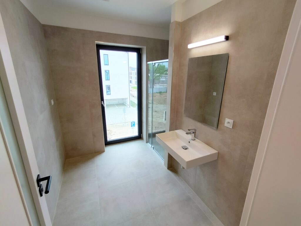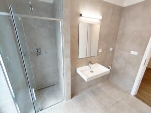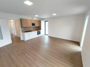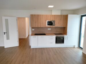 Moderní a elegantní 3+kk s šatnou. Prostorný a prakticky uspořádaný. Byt je vybaven kuchyňskou linkou s elektrospotřebiči (myčka, trouba, mikrovlnná trouba, lednice s mrazákem a indukční varná deska). Koupelna se sprchovým koutem, umyvadlem, zrcadlem, otopným žebříkem a ventilem na pračku. Samostatné WC. V celém bytě je položena kvalitní vinylová podlaha. Byty v lokalitě jsou vytápěny systémem podlahového teplovodního topení. Ideální byt pro větší rodinu.